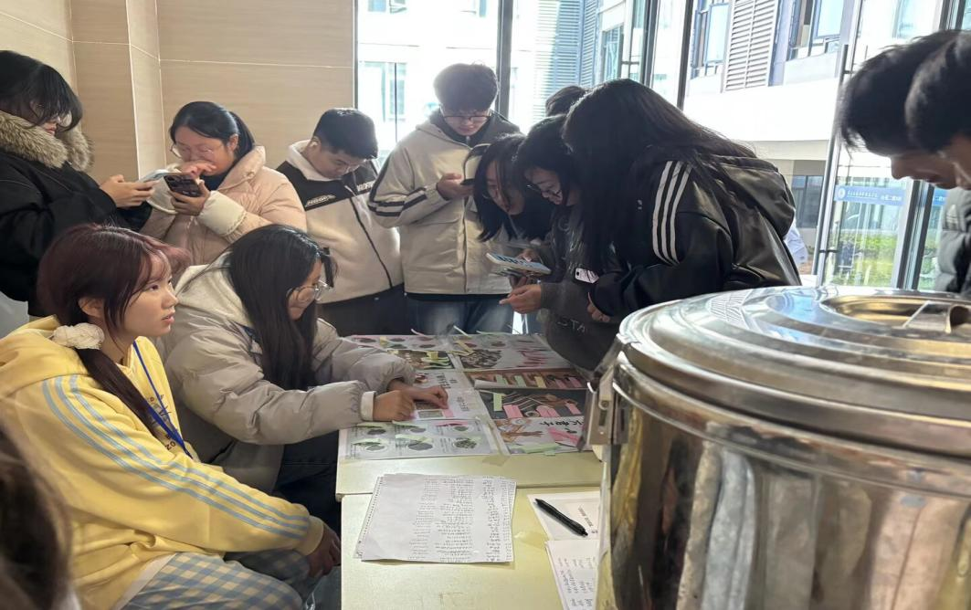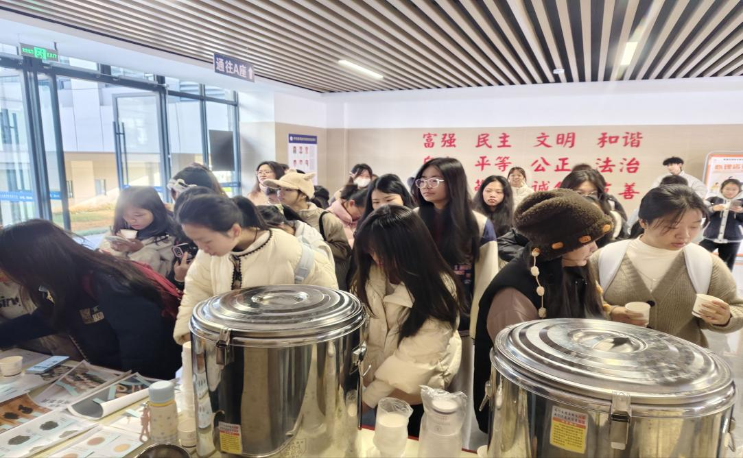 本次活动以“我为同学做实事”为宗旨,以“热饮免费领、茶文化趣味猜图挑战”为主要内容,同时还提供教师专属关怀。在活动期间,现场设有两个摊位,一部分同学根据自己的喜好有序排队领取热饮,一部分同学有序排队参与茶文化猜谜挑战,现场秩序井然。