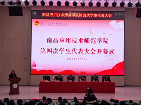 2025年12月16日,南昌应用技术师范学院第四次学生代表大会于图书馆报告厅圆满召开。200余名学生代表汇聚一堂,严格按照会议议程完成换届选举等核心任务,为学校学生组织建设增添新的活力。此次大会收到了江西师范大学、南昌工学院等11所高校发来的贺信及祝贺视频,各高校表达了愿与我校携手共进、友谊长存的美好期许。