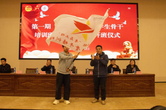 仪式上,杨冬为第二期“青马工程”大学生骨干培训班授旗,标志着我校第二期“青马工程”大学生骨干培训工作正式启动。